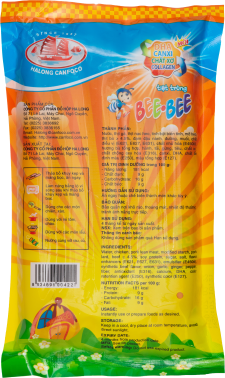 Water, chicken, pork lean meat, modified starch, pork lard, beef ≥ 4.5%, soy protein, sugar, salt, flavor enhancers (E621, E627, E631), emulsifiers (E450iii), beef flavor, onion, garlic, ginger, pepper, fiber, antioxidant (E316), calcium, DHA, color retention agent (E250), synthetic color (E127).